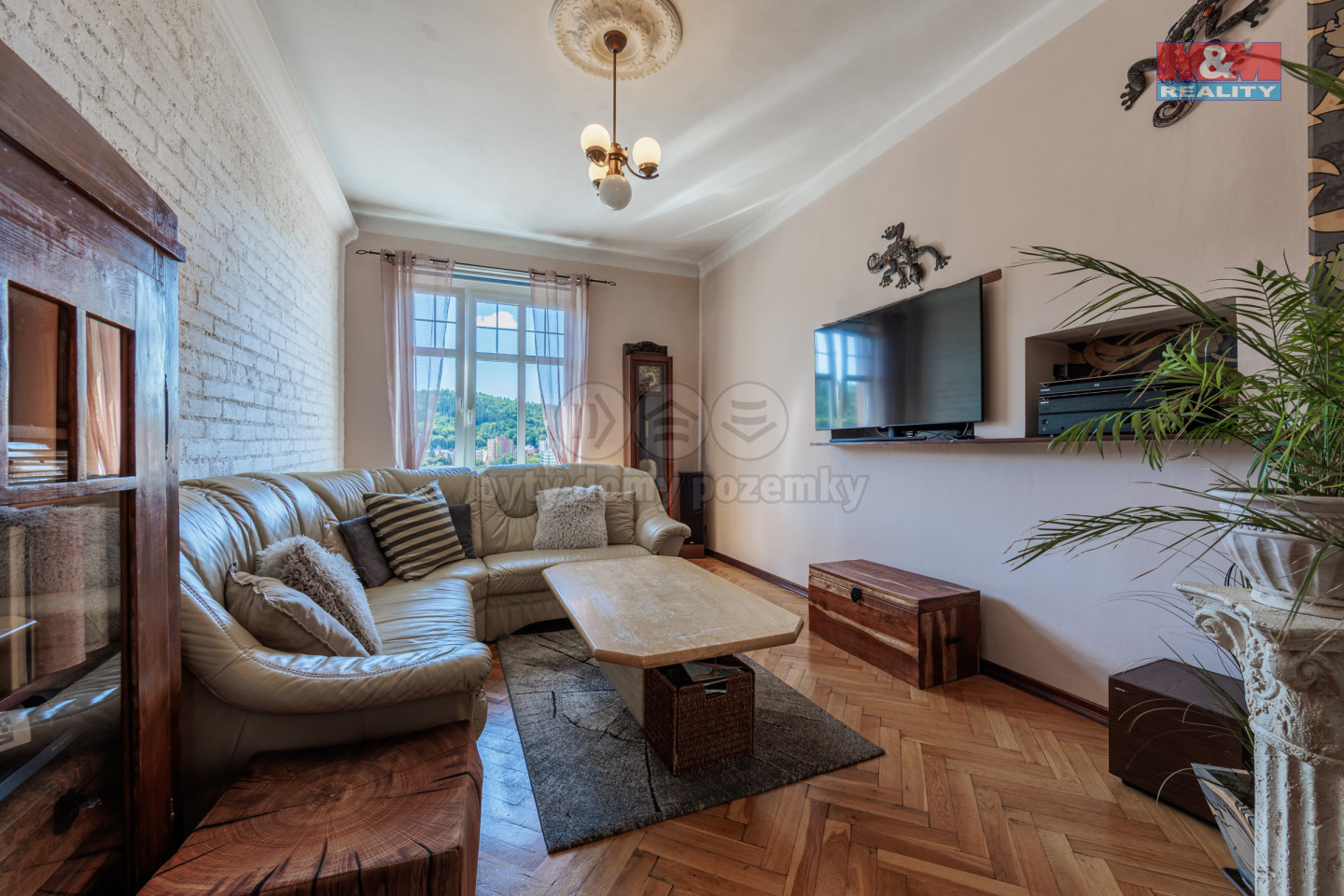 Byt s duší a výhledem na Karlovy Vary - Šmeralova ulice. V pátém patře činžovního domu bez výtahu, kde schody berou dech a výhled ho zase vrací, se ukrývá byt, jaký se jen tak nevidí. Každý kout tu dýchá elegancí minulého století. Vysoké stropy, dřevěné podlahy a světlo, které se odráží od oken jako v ateliéru malíře. A když se podíváte ven? Karlovy Vary jako na dlani. Tenhle byt si nese v sobě příběh. Nevnucuje se, ale když mu dáte čas, pohltí vás. Je ideální pro někoho, kdo nehledá jen místo k bydlení, ale prostor s atmosférou. Kdo ocení vrzání starých prken víc než dokonalé linoleum. Kdo má rád charakter, a ne uniformitu. Dům stojí ve Šmeralově ulici, kousek od centra a přitom v klidné části. Doslova vedle školy, což ocení rodiny i investoři. Ráno vás tu probudí šum města a večer klid, který byste v centru nečekali. Tenhle byt není pro každého. Ale možná je právě pro vás.