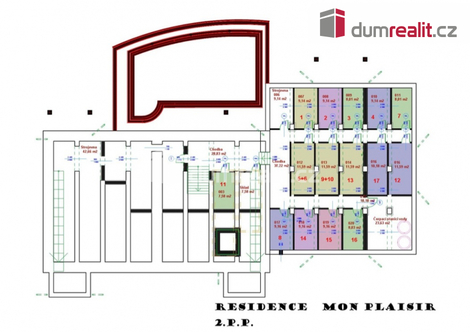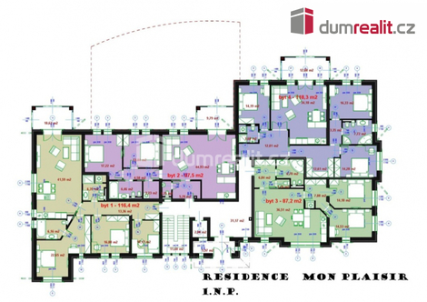 Dumrealit.cz Vám zprostředkuje prodej luxusních bytových jenotek a apartamentů v residenci Mon Plaisir v Mariánských Lázních. Objekt je koncipován tak, aby uspokojil požadavky nejnáročnějšího klienta. Chtěli jsme pro Vás připravit něco výjimečného, proto jsme hledali lokalitu, která je v docházkové vzdálenosti do 15 min od hlavní kolonády a zároveň v plné míře nabízí to, co je pro Mariánské Lázně nejcennější - klidný pobyt uprostřed parků na čistém vzduchu překypujícím kyslíkem. Našli jsme místo u soutoku Úšovického a Třebízského potoka v lokalitě zvané Lunapark. Zde je stavební pozemek s původním historickým vodojemem zásobujícím dříve Mariánské Lázně pitnou vodou. Klenuté stropy vodojemu zachováváme jako historickou památku v podzemí novostavby residence. Příjezd vede po málo frekventované Třebízského ulici vedoucí směrem k obci Prameny. Pěší přístup do centra města vede lesoparkem po asfaltových cestách Třebízského ulicí kolem hotelu Parkhotel Saint Moritz ( kompletní balneoprovoz, bazén a restaurační provoz), Městského divadla N.V. Gogola na Hlavní třídu. Souběžně s ní je možné využít i druhou cestu - Chopinovo ulici vedoucí kolem tenisového areálu s lanovým centrem, hudební školy a hotelu Reitenberg na hlavní Kolonádu. Vydat se je možné i pěší upravenou parkovou cestou podél potoka a přes kolonádu Lesního pramene. Dům s výraznou architekturou nabízí ve čtyřech nadzemních podlažích 15 nadstandardních bytů odlišných velikostí a dispozičním řešení od plochy 78 m2 do 215 m2. Byty umístěné v 3. patře jsou řešeny jako mezonetové. Většina bytů má vlastní balkony s výhledem na okolní krajinu. V 1.PP se nachází garáže pro 11 osobních vozidel, wellness a krytý bazén. V objektu je osobní výtah. V historickém sklepě vodojemu je 15 chladných nevytápěných komor. Obytná podlaží a garáž jsou propojená domovním schodištěm a osobním výtahem. Pozemek domu poskytuje jak možnost rekreace na jeho jižní straně, tak dostatek parkovacích míst na straně severní. Doporučujeme. Ev. číslo: 626203. Energetický štítek: B (59 kWh/m2/rok).